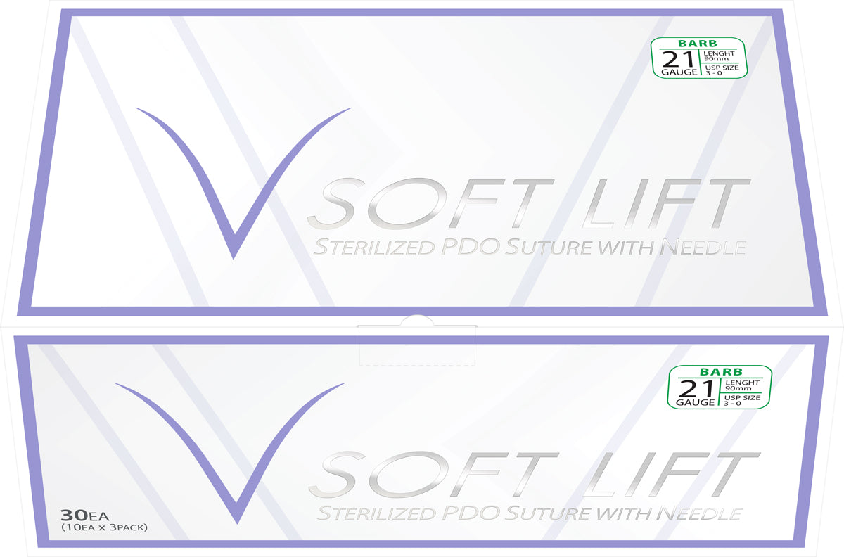 A multidirectional barbed thread with extra power for a lifting effect.